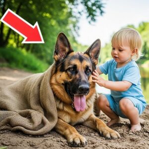 Everyone thought the German Shepherd was dead, tied in a sack and hurled into the river like trash. But when a tiny baby…