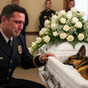 The officer stood weeping beside his K9 partner’s coffin. His best friend gone forever. But just as they prepared to lower the casket,…
