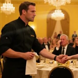 the ballroom glowed with golden lights music pulsed laughter echoed across the dance floor in the corner sat a young woman in an…