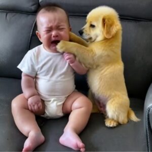 What this little puppy did to the crying baby was surprising. It left mom in tears. The golden retriever puppy did something no…