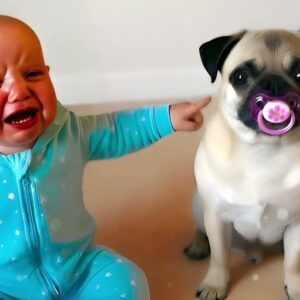 The baby cried as the dog took his pacifier. But what the cat did was amazing. When a jealous pug stole a baby’s…