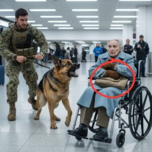 The station fell silent as Atlas, the German Shepherd, suddenly broke free from his handler, barking furiously at an old woman in a…