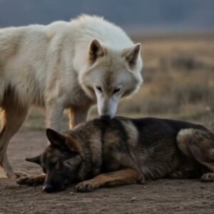 An old wolf approached a dying canine German Shepherd. What he did next was heartbreaking and beautiful. In the heart of a frozen…