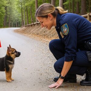 The morning was calm as officer Sarah drove her patrol route along the forest road until she noticed a tiny figure…