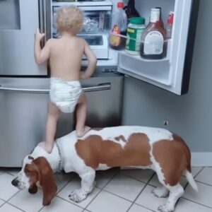 The toddler caught standing on the Basset Hound. What the dog did next shocked everyone. The toddler balanced on the dog’s…