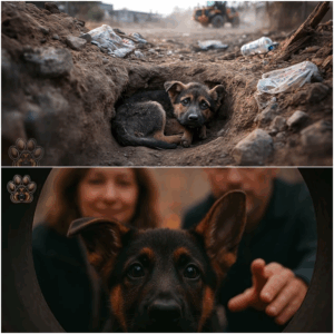 The puppy lived in a hole like a tiny bunker he dug just to survive. And thousands walked past. A four-month-old…