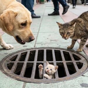 Oh my god. I have a kitten trapped in a storm drain. The slits are too narrow to reach. We’re in the park…