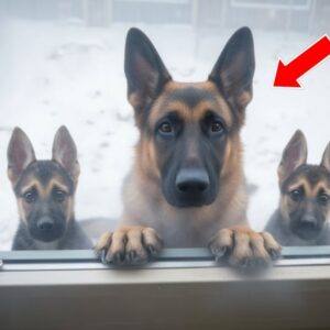 German Shepherd freezing with puppies begs to come inside and man is shocked to discover the reason. The winter wind screamed…