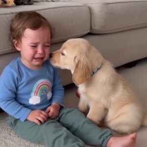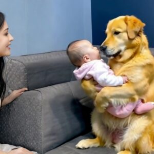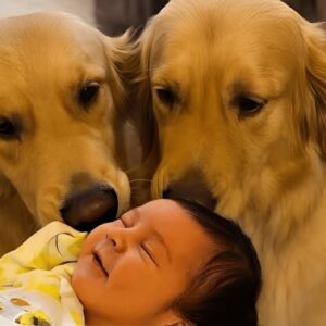 These golden retrievers twins fallen in love with the baby. This is what they did during separation. These golden retriever twins…