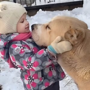 She hugged the dog in the snow. What he did next was not expected. She thought her daughter was just hugging…
