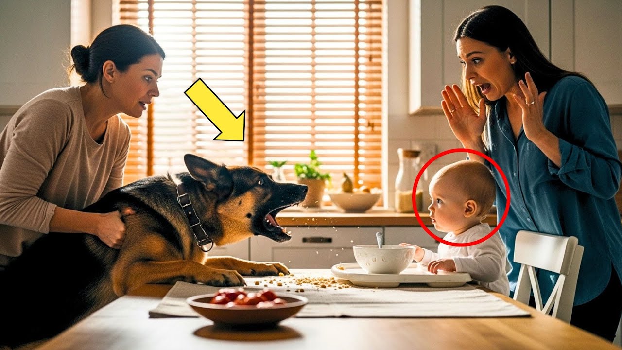 Breakfast was supposed to be the calmst moment of the day, but one bark shattered that piece. The family’s loyal German Shepherd, Rocky, suddenly launched across the kitchen like a thunderbolt, teeth bared, eyes blazing, heading straight for the nanny. A spoon hit the floor. Oatmeal splattered and the baby’s cries filled the air as panic erupted.