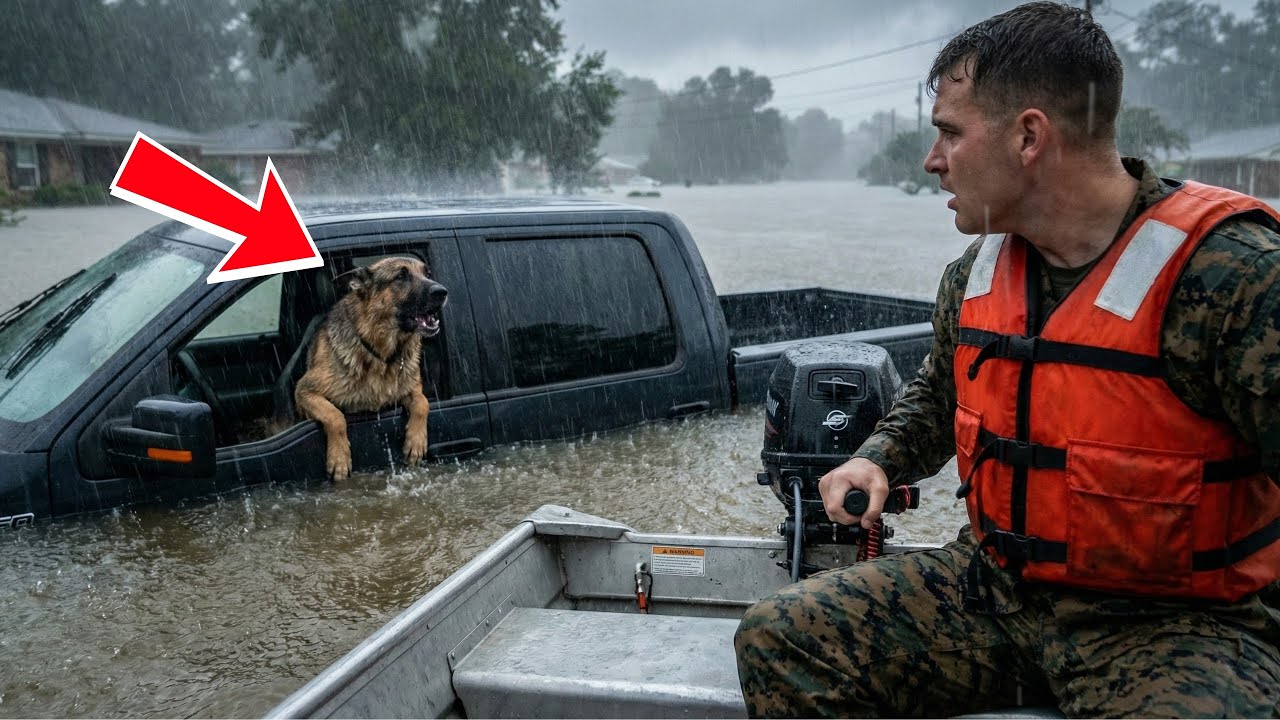 “He looks hurt,” Miller whispered, leaning over the gunnel. Silas saw it, too. The dog was favoring his left hind leg, keeping the weight off it. A dark stain on the fur suggested a cut or a puncture wound, likely from the debris. Yet, the animal didn’t make a sound. No whining, no barking for help. He simply watched them, his amber eyes burning with a strange calculative intelligence.