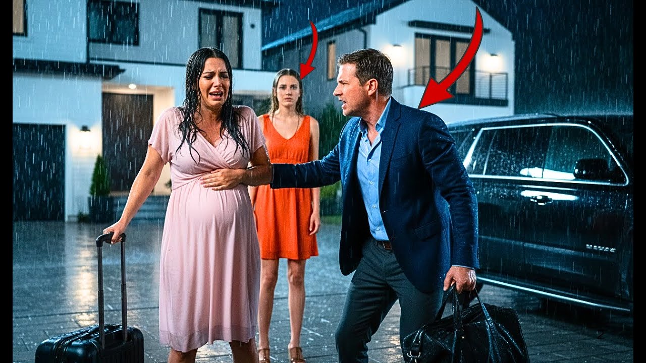 The rain was not just falling; it was a deluge, a furious curtain of water mirroring the chaos inside the luxurious, modern home. Elena stood on the driveway, soaking wet, her pink maternity dress clinging to her swollen belly. She clung desperately to the handle of a single suitcase, the weight of it insignificant compared to the crushing betrayal in her heart.
