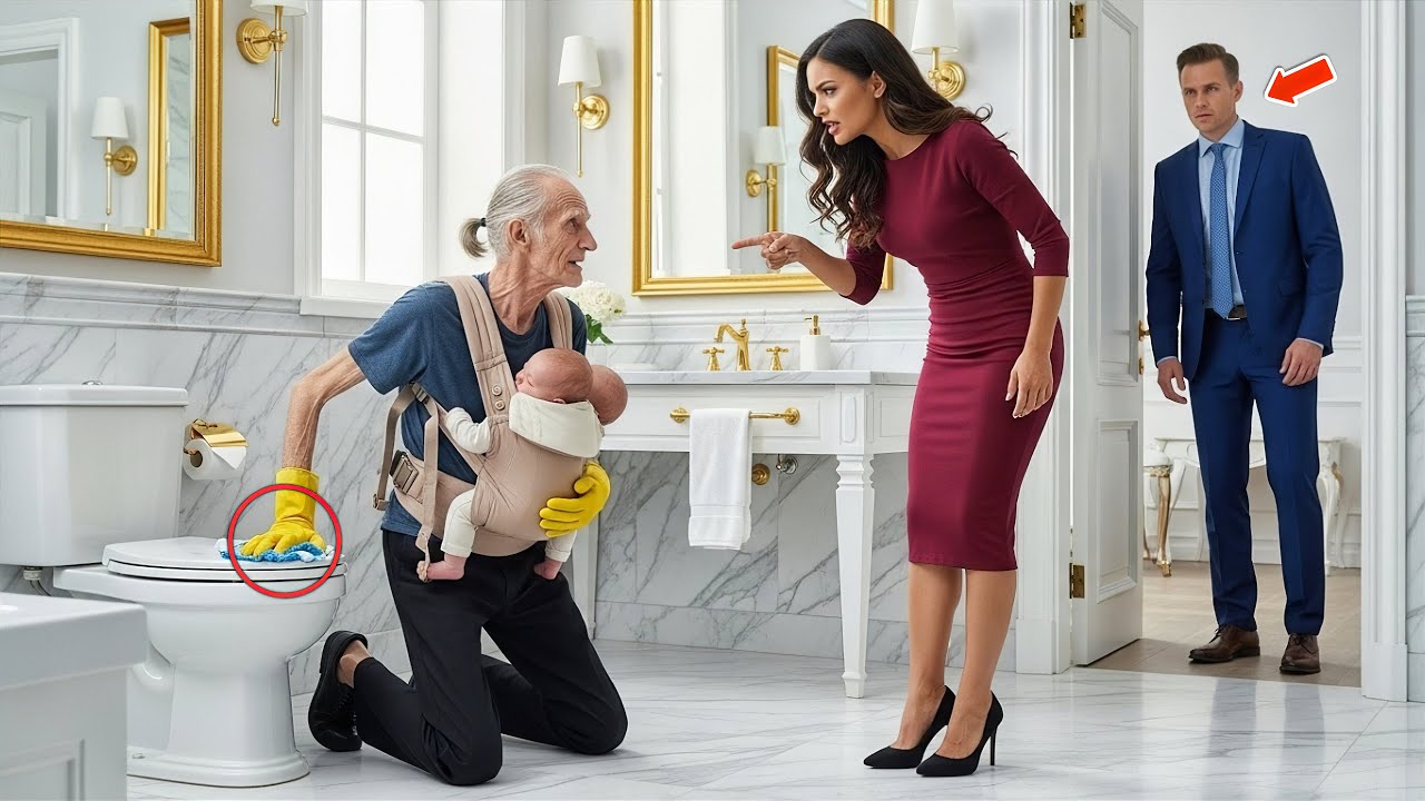 The bathroom was pristine, almost blinding with white marble and gold fixtures, but on the cold floor knelt Aldrich, sweating, trembling, and struggling to scrub a toilet with the stiffness of someone in unbearable pain. His back was hunched unnaturally, his breathing shallow, his ribs showing through his worn gray shirt.