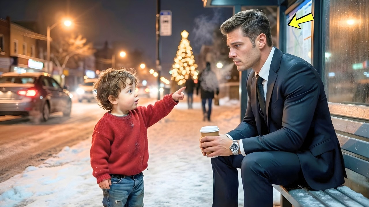 Julian Vance sat on the worn, metal bench of the bus stop, looking utterly out of place. He was impeccably dressed in a dark, expensive suit and tie, his posture rigid even in repose. He was a Lonely Billionaire, the man who could buy any gift in the world but felt utterly incapable of giving or receiving real warmth. He held a paper coffee cup—cold now—and his handsome face was etched with a profound, wintry sadness. He was waiting for nothing; he had nowhere to go, having just fled a cold, obligatory corporate Christmas party.