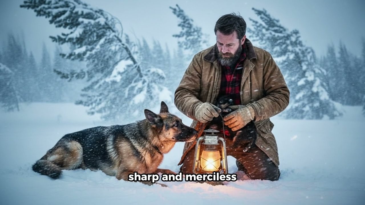 A whimper. Daniel froze. He raised his lantern and stepped into the wind, scanning the drifting snow. [music] At first, he saw nothing. Then a shape appeared, small, trembling, dragging [music] itself through the snow. A German Shepherd, barely alive. Her fur clung to her bones. Ice hanging from her belly like shards of glass.