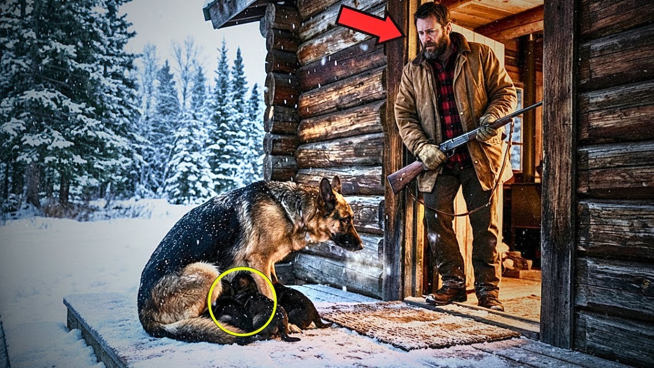 Something soft, weak, and desperate.  Then he heard it, a sound so faint he almost ignored it. A whimper, a cry. Upleved, he lifted his lantern and froze. The world stopped at a retired K9 mother dog lay in the snow. [music] Her breathing shallow, her body trembling uncontrollably. A German Shepherd, skin clinging to bone for matted with ice, breath sharp and shallow, was crawling toward his cabin.