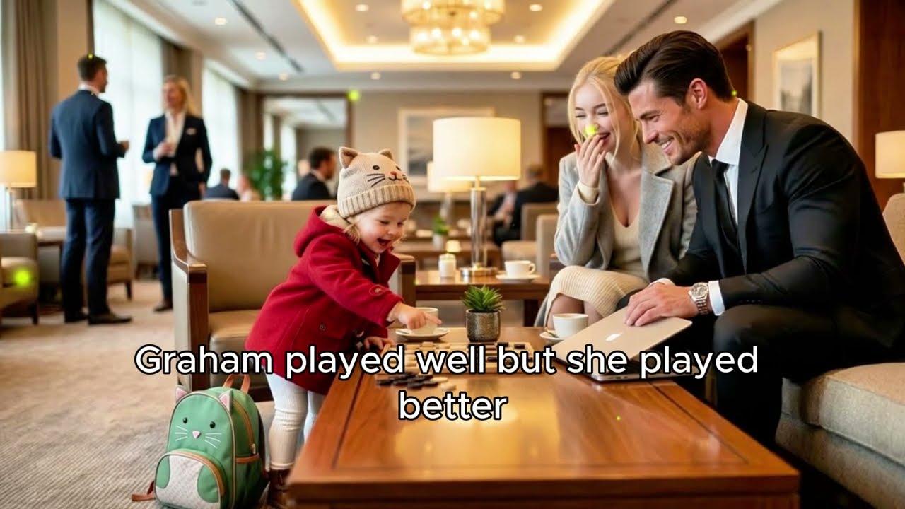 Sophie giggled uncontrollably. The second game began. Clara joined. Sophie won again. Clara groaned playfully. Oh no. She glanced at Graham, then back at Sophie. My turn, huh? She paused then quietly. I used to be afraid of flying. Sophie gasped. But we fly all the time. Clara smiled.