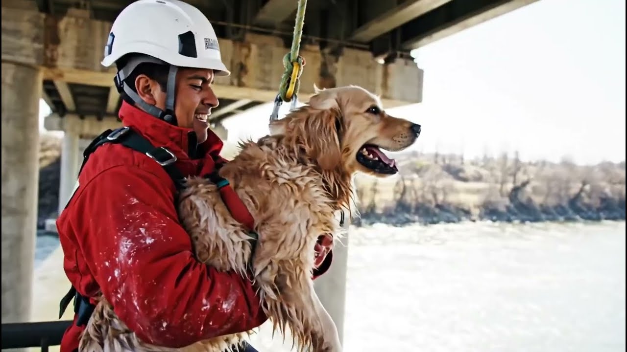 People nearby rush over. They see the puppies panic. They look down and their hearts drop. There she is, hanging hundreds of feet above the water, barely holding on. Someone screams, “Call 911.” Phones fly out. And then the rescue team arrives like lightning. They don’t hesitate. They gear up. Secure lines. Down. Check the binders.