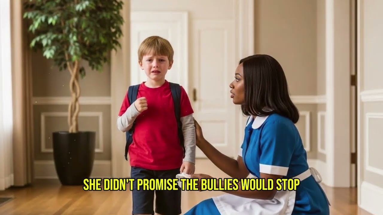 His lip trembled, not from cold, but from the pressure of holding back tears for the last hour of school and the entire ride home. The bruises on his arms throbbed beneath the sleeves of his uniform, purple marks from the playground that nobody had bothered to notice.