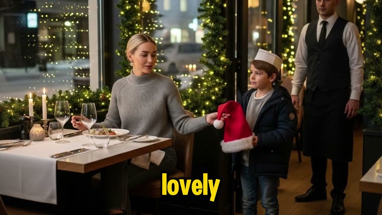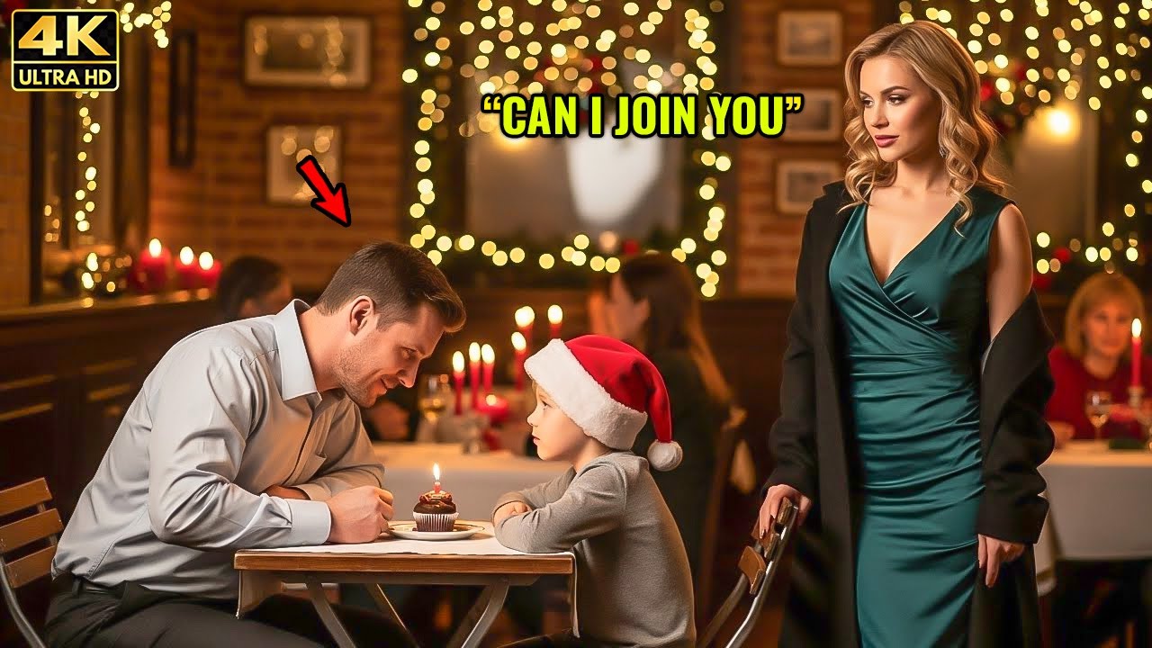 In the center of the restaurant, glowing with Christmas lights, Finn Archer quietly slipped a small cake before his son, Otis Archer, during his brief break. Father and son lit a single candle, smiling softly as though hiding the entire world. At the table by the window, Vivien Sterling, the CEO who always dined in silence, suddenly froze, her knife and fork suspended.