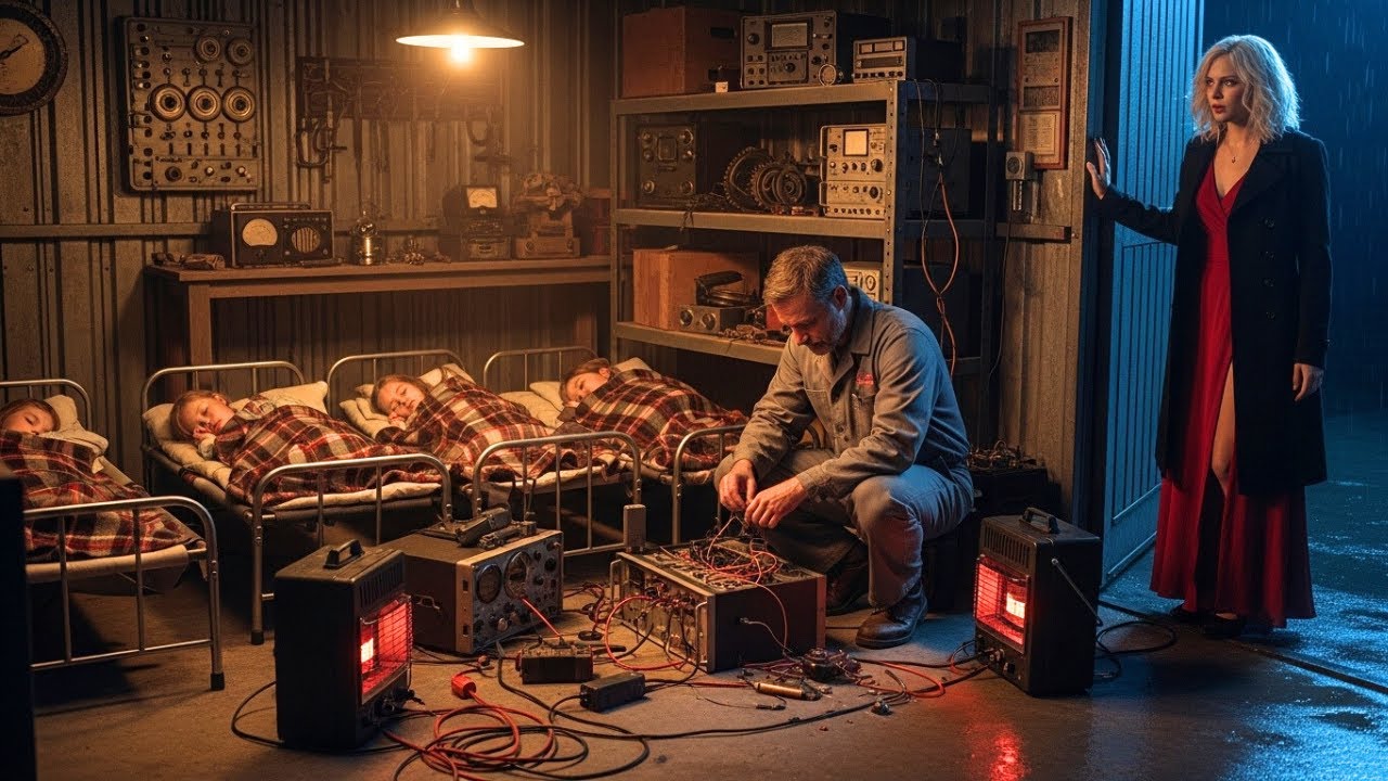 Near the far wall, seven sleeping bags lay neatly in a row, each with a child curled inside. Children, seven of them, all under one collapsing roof, all sleeping beside heaters Noah must have repaired himself. The air smelled faintly of solder, old wood, and something warm. Soup, maybe. Life, safety, the exact opposite of her expectations. Noah sat at a long metal table, his posture relaxed, but focused, his hands working with the ease of someone who understood machines the way others understood language.