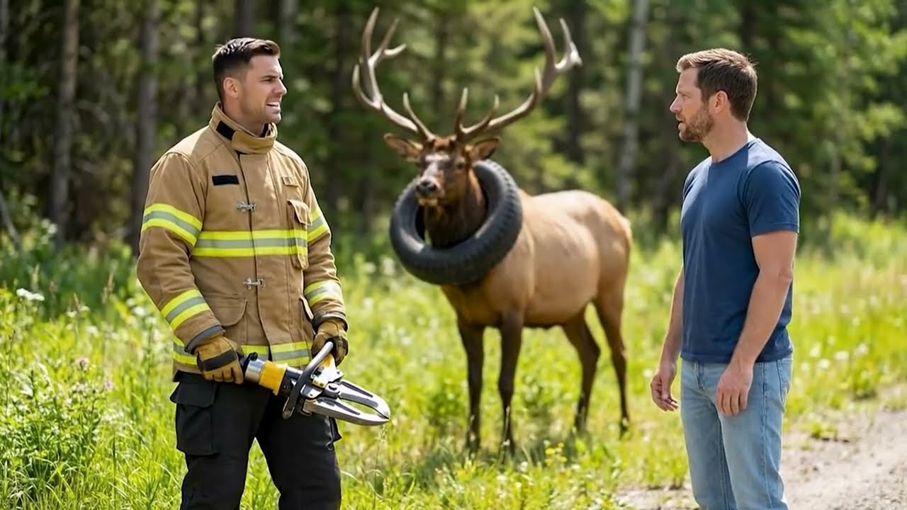 Then he snorted briefly through his nostrils, turned, and walked into the woods—not in a panic, but calmly and confidently, his head held high. One of the firefighters carried both halves of the tire to the fire truck and asked, “How did he even manage to walk around with that for two years?” The vet shook his head and explained, “Some irresponsible person threw this tire out in the woods.