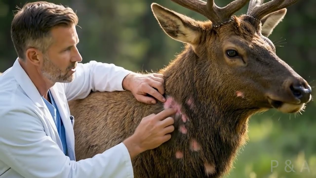 wearing a bucket full of rocks around your neck for two years straight, every day, every minute. The veterinarian carefully ran his hand over the deer’s neck, inspecting the damage. The fur was worn almost down to the skin, deep furrows were visible on the neck, the skin was red and inflamed, but, fortunately, not bleeding.