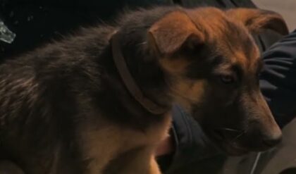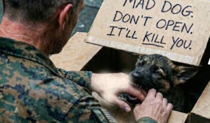 Marina knelt beside the German Shepherd, her hand gliding down Astra’s spine. “Brave girl,” she murmured. “Today, we’re going out so the doctor can help you heal.” Astra tilted her head, those golden eyes catching the light as if she understood more than anyone could put into words. The two puppies stirred awake, blinking in confusion, their tiny legs wobbling as they searched for footing.