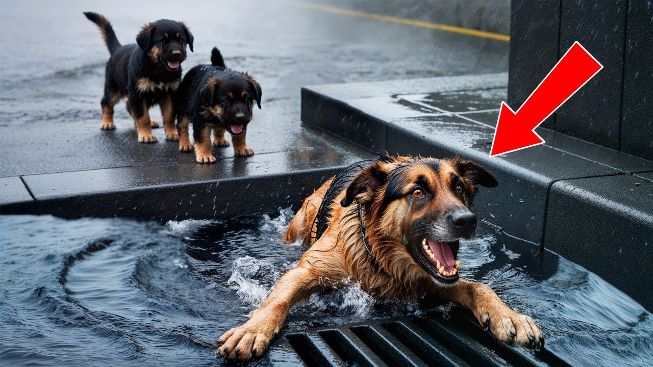 A woman in her 30s hair pulled back hastily, an old raincoat clinging to her frame, the umbrella in her hand missing a few ribs. Her eyes widened at the sight of him clutching a drenched German Shepherd with two small heads poking from the shelter of his jacket. “Oh my god, what happened?” Her voice carried a tremor of alarm. She Liam faltered, then corrected himself. This dog, she was being pulled into a storm drain.