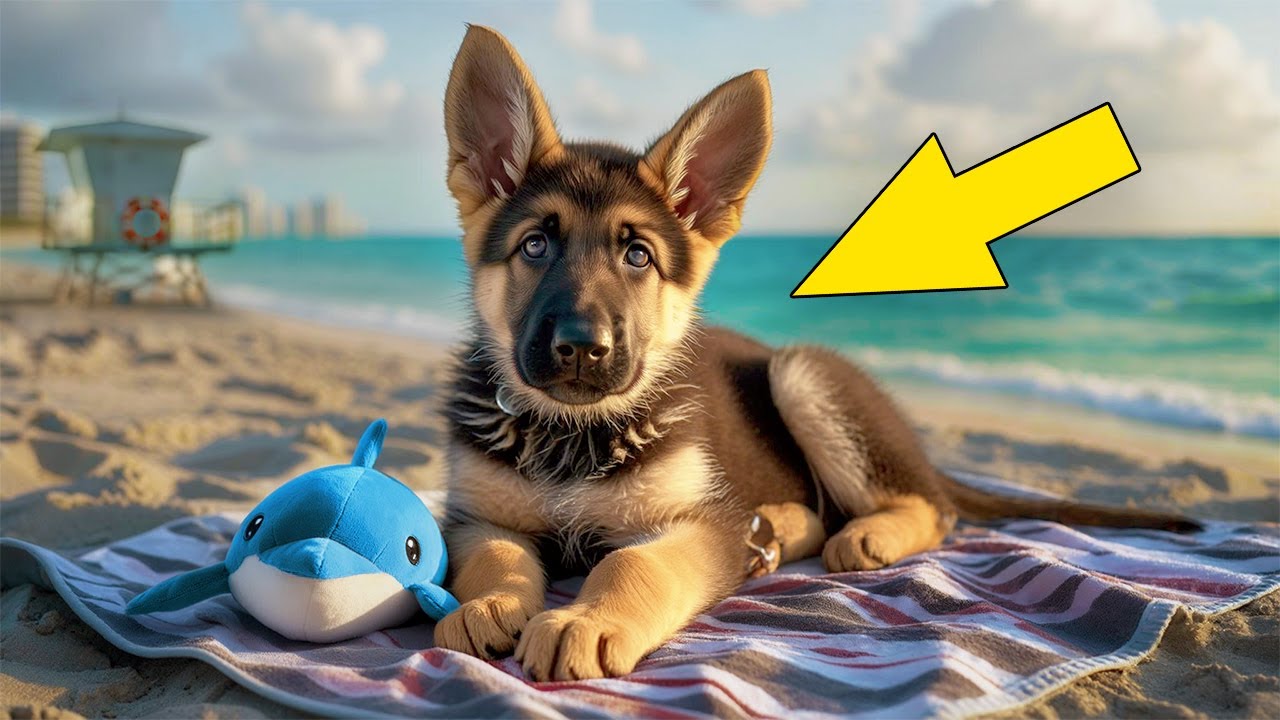 He was sitting on a towel, not curled up, not sleeping, just sitting. Back staring out at the waves like he was waiting for someone who never showed up. A six or seven-month-old German Shepherd, sand covered, ribs slightly visible, eyes scanning every movement along Miami Beach. Tourists passed him all day.