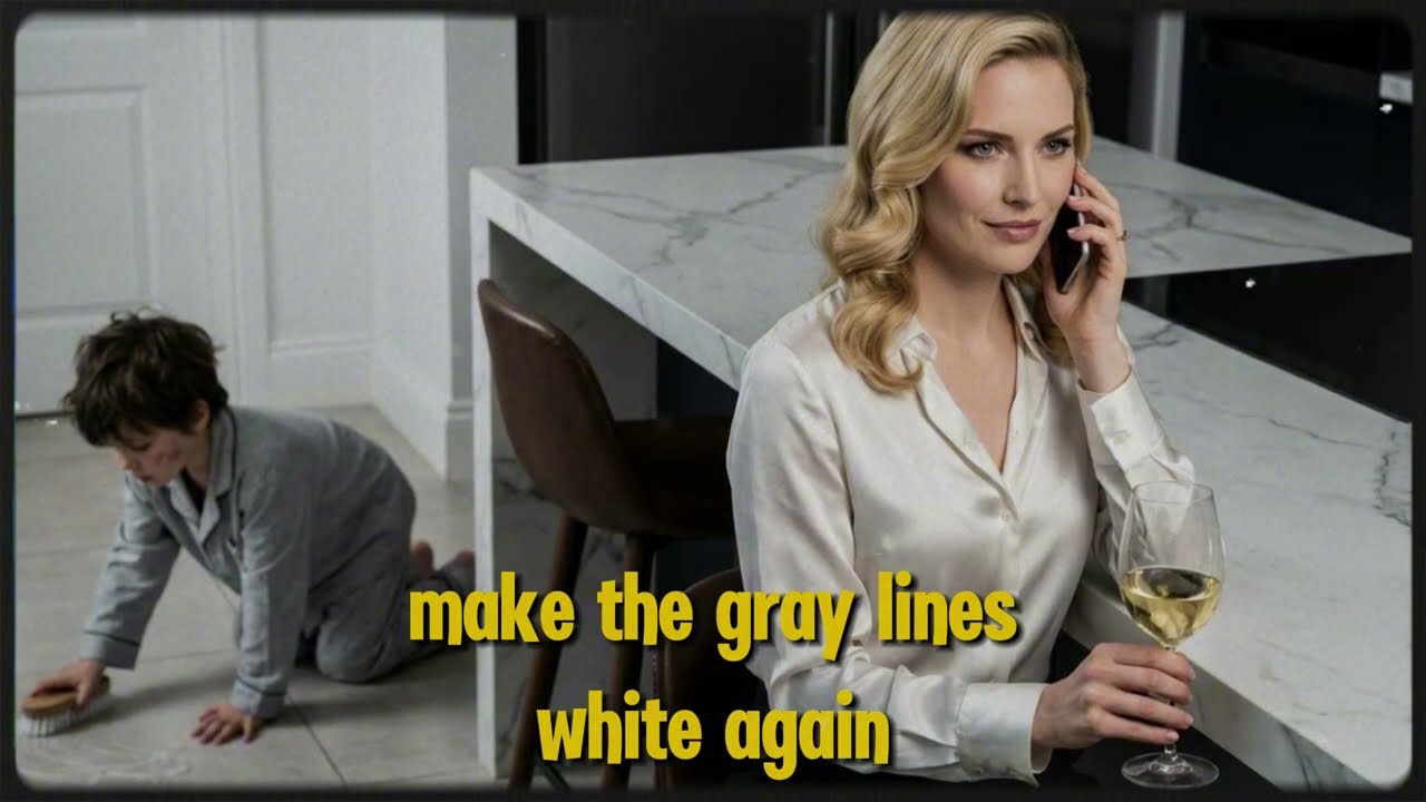 He didn’t stop to wipe them. Stopping meant attention, and attention was dangerous. Above him, perched on a high stool at the kitchen island like a queen on a throne, sat Serena. She was dressed in a white silk blouse that shimmerred in the sunlight pouring through the windows.
