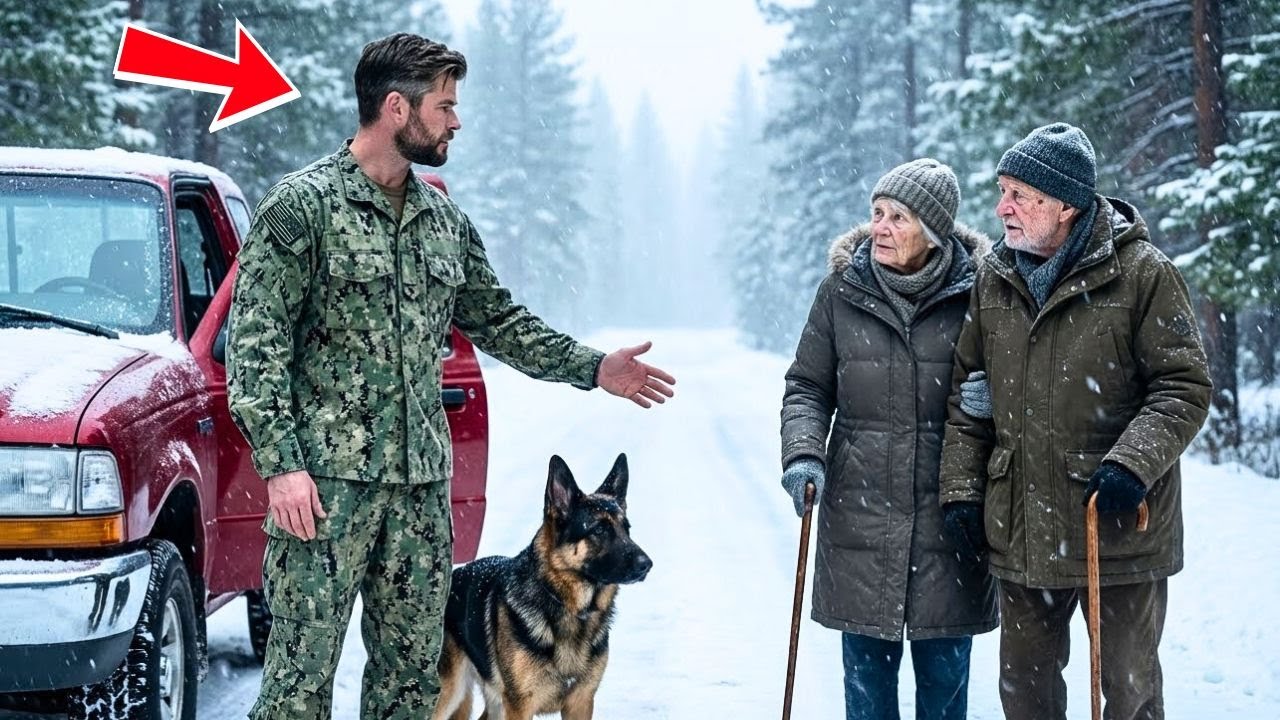 Two silhouettes moved through the white silence. An old man and his wife leaning on each other as the wind tore across the mountain road. Their coats were thin, their hope even thinner. No one was supposed to see them out there. Miles away, a Navy Seal drove through the same storm. A man chasing ghosts, not destinations, with only his German Shepherd for company.