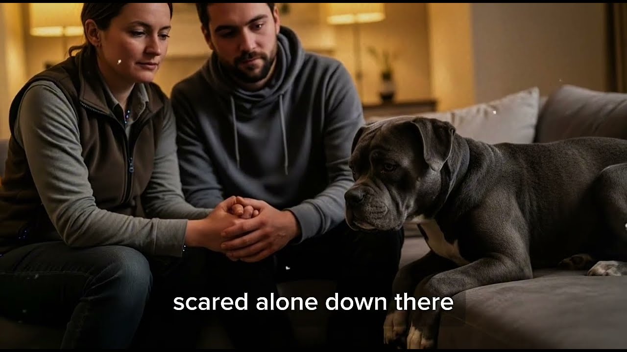 We stood up slow. Atlas’s head shot up, eyes wide, watching. “It’s okay,” I said gently. “We’re just going upstairs. You’re safe down here.” He didn’t look convinced, his body tensed like he thought we were leaving him. My partner knelt down a few feet away. We’re not going anywhere, Atlas. We’re just sleeping.
