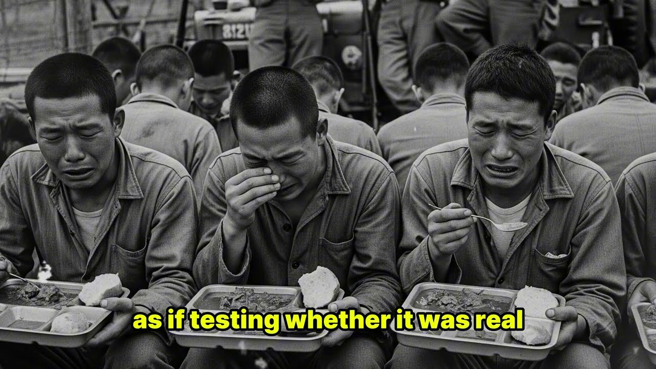 Yet the days passed, and the rations did not change. Each morning brought bread and butter, each evening meat and potatoes. The food healed their wounds, filled their hollow stomachs, and gave them strength they could not deny. Suspicion clung stubbornly, but hunger gnawed harder. A sergeant who had sworn never to touch American food finally gave in after 3 days, devouring his portion with tears streaming down his cheeks.