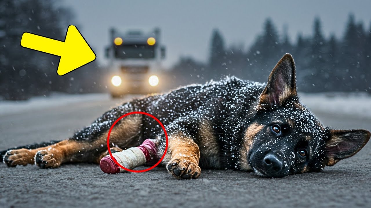It wasn’t a fallen branch or a tire scrap. It was breathing, barely. A German Shepherd puppy, no more than 6 months old. His back leg was bent awkwardly, and the fur on his left side was matted with blood. The snow beneath him was stained pink. His chest rose in short, panicked puffs. He didn’t cry. He didn’t whimper.