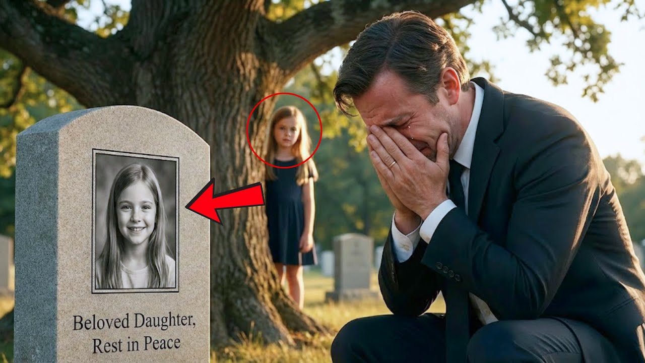 In the silent cemetery, the millionaire knelt before his daughter’s gravestone, sobbing as if life had been ripped from him. What he never imagined was that his daughter was alive and about to reveal a truth that would change everything forever. The cemetery was hushed, gripped by a chill that seemed to cut through the skin.