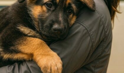 Yes, someone left him. We dimmed the lights and softened our voices. I lay on the floor beside them as the house exhaled. A loyal puppy doesn’t ask for much, just a heartbeat he can hear and a hand that doesn’t vanish when the room goes quiet. He had both. Morning came in gray. Cinder didn’t move.