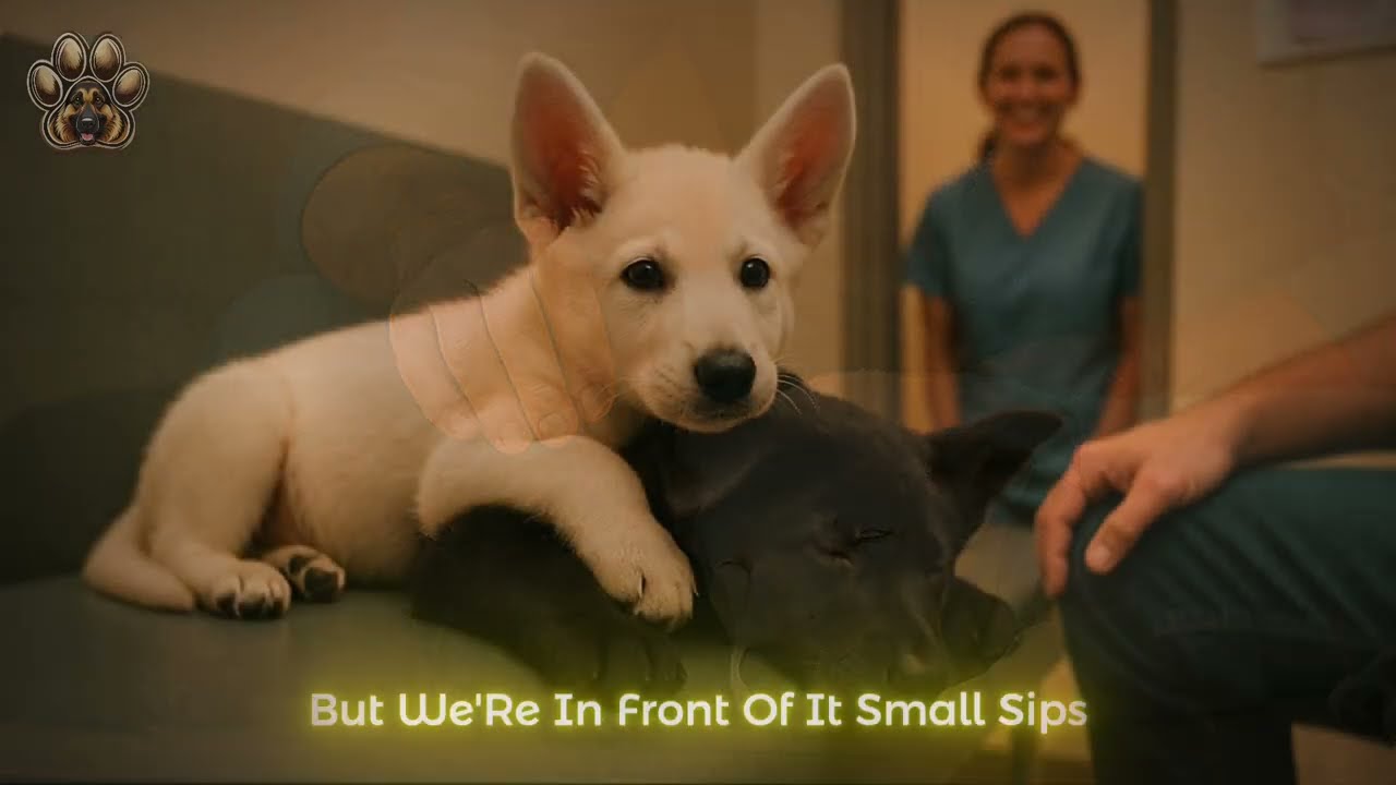 A rescued puppy can backslide when his body tries to remember everything at once. In the waiting room, Frost cried low and steady and pawed at the exam door until a nurse smiled and waved him in. He hopped onto the bench and draped himself along Cinder’s side like a little white blanket, someone forgot to fold.