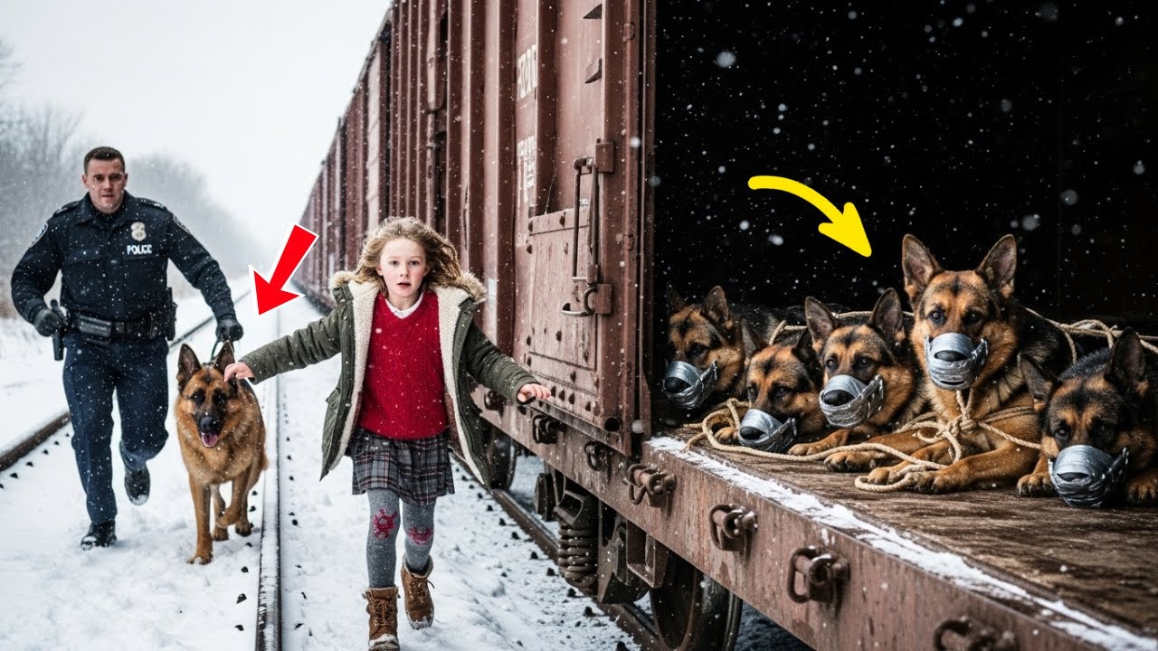 Her face was flushed red from the cold. hair tangled beneath a knit cap that had lost its pompom. Her eyes, big and brown and fierce, looked straight at him with the urgency of someone twice her age. “Luke bl” blinked. “Easy there, kid. What’s going on?” “There are dogs!” she gasped, panting. “In the train yard, they’re tied up. They’re dying.” He frowned.
