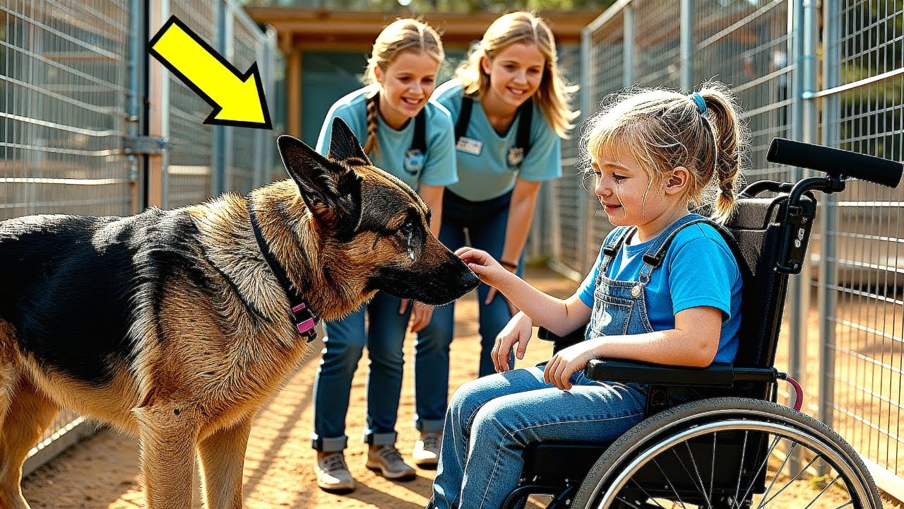 The animal shelter had seen hundreds of visitors. But that morning was different. Dot. A small wheelchair rolled through the gates. Carrying a paralyzed little girl named Lily. And the entire shelter went silent the moment she arrived behind the cages. A wounded German Shepherd snarled and lunged at everyone who passed.