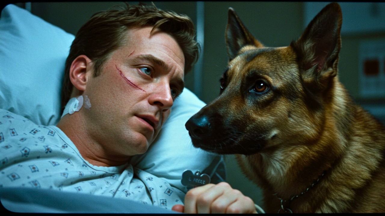 The attackers struggled harder, trying to break free, but Axel held tight. His body battered but immovable. Just before the door burst open with security and staff, Logan looked at his dog, now bloodied, breathing heavy, but still standing. “Good boy,” he whispered, his voice. And in Axel’s burning eyes, he saw not a pet, not a patient, but a soldier still serving, still protecting, even when his handler could no longer walk.