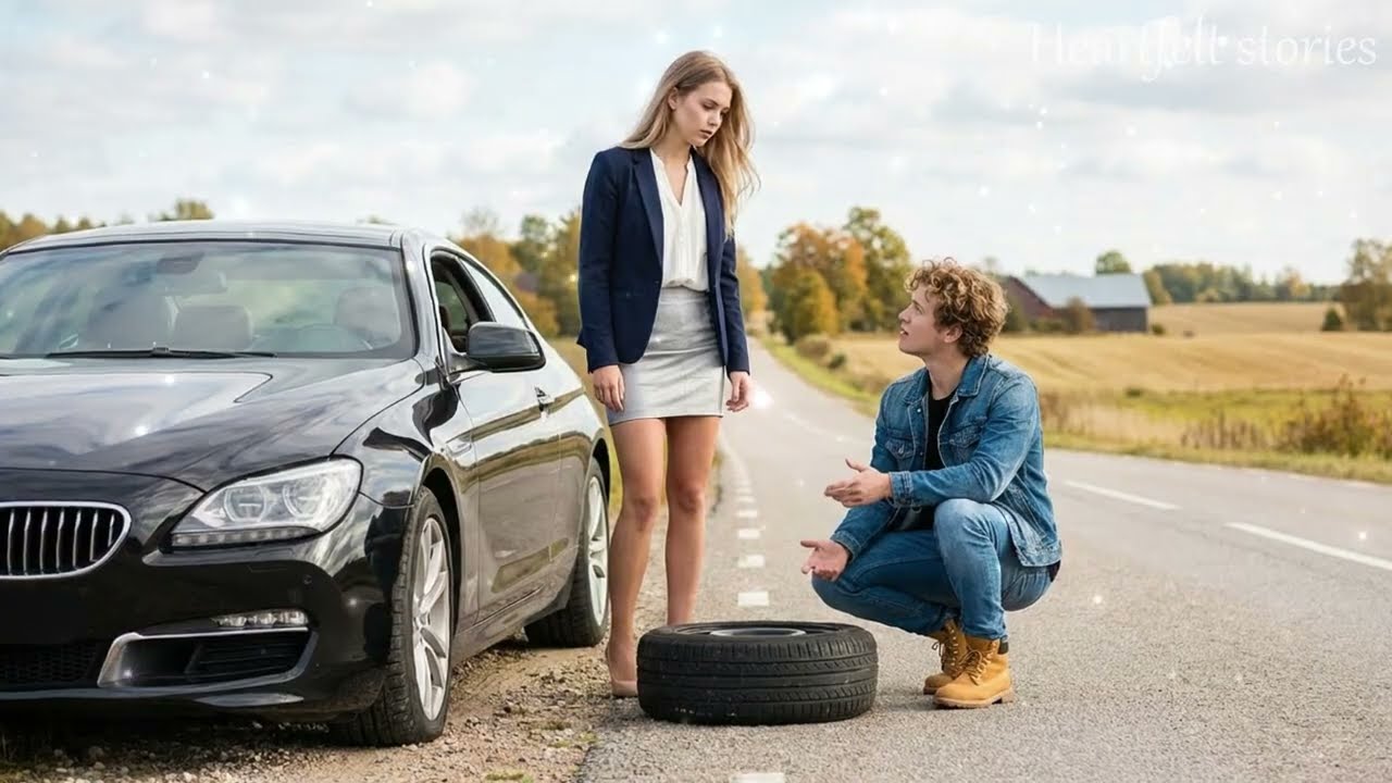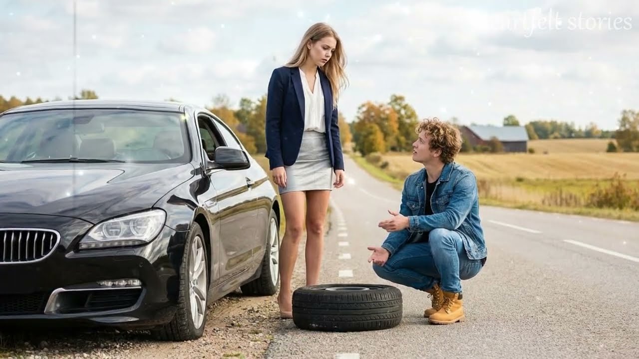 Madison Clark had survived worse than a flat tire on a rural Colorado road, but not with a dying phone, a stalled Mercedes, and a noon presentation in Denver that could change her entire career. She stepped out of the car, the sharp mountain winds slicing across her blazer as her heels sank slightly into the dirt. Her breath fogged the air.