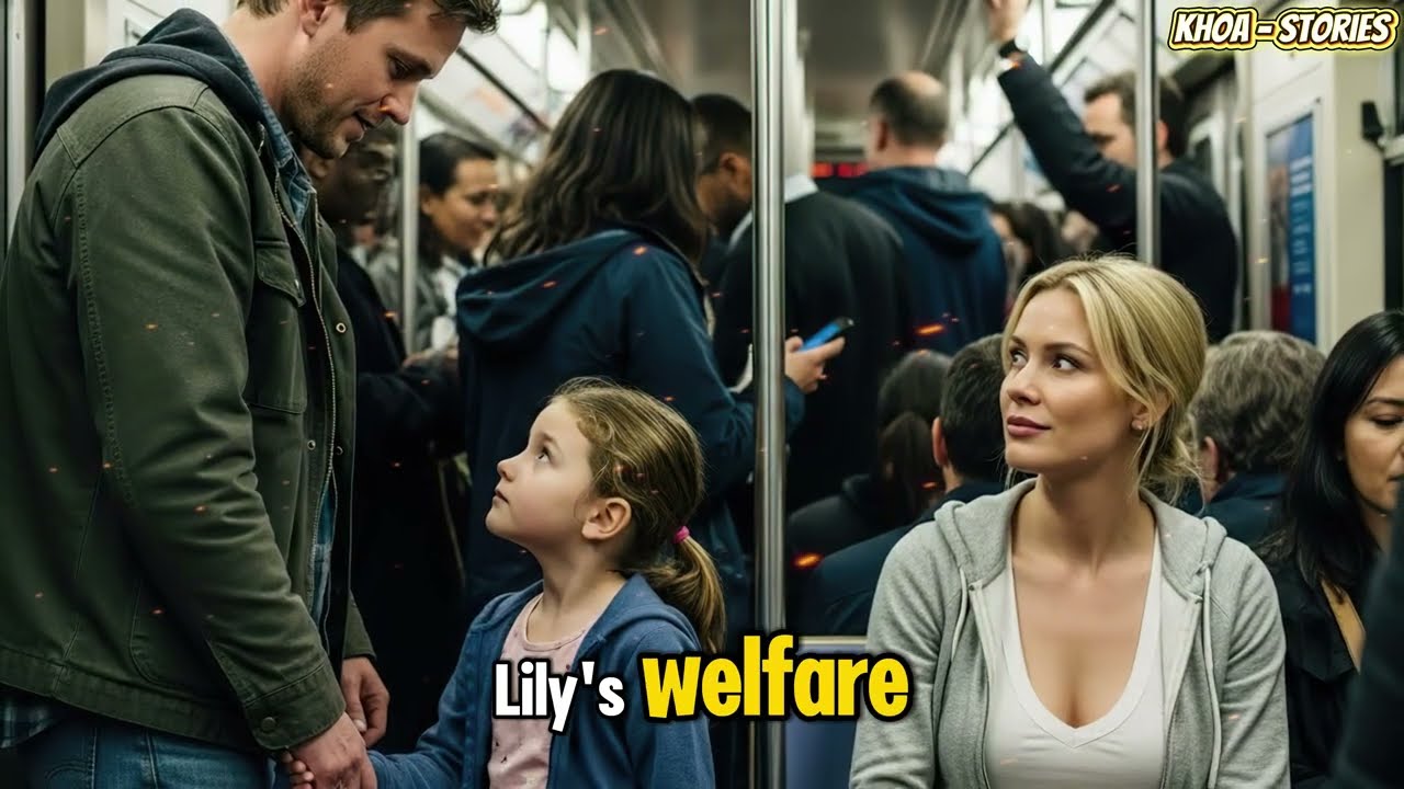 He looked like someone who had learned to survive on less. The train slowed for the next stop and more passengers pushed toward the doors. The man placed his hand on his daughter’s shoulder, steadying her as the car swayed. She looked up at him with complete trust, the kind that only children can give.