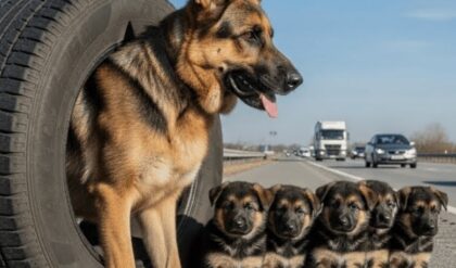 When his voice gave out, he whined. When no one came, he circled the box, curled his thin, shaking frame around the baby inside, and pressed his soaked body against the side of the foam to shield it from the wind. He lowered his head, ears twitching at every passing sound, eyes wide open, guarding through the night, a nameless dog, a nameless child, and a world that hadn’t yet seen what love looked like when it had nothing left to lose. The night dragged on.