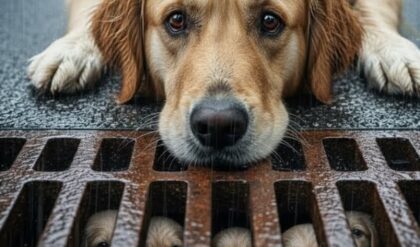 He gripped the corner of the box gently with his teeth and began dragging it. Inch by inch, he pulled it out of the bushes, scraping it across wet earth, slipping in the mud. The rain stung his eyes, but he didn’t stop. He tugged it all the way to the edge of the road, where headlights sometimes appeared in the distance before vanishing again into the storm.