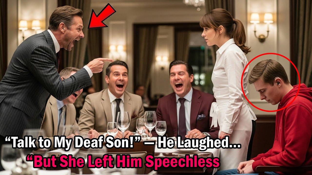 The billionaire pointed at me and laughed. You a worthless waitress trying to communicate with my son? His friends joined in, mocking me. But when I finally spoke up, the entire restaurant went silent. What happened next didn’t just humiliate him, it destroyed his reputation forever. This is my story.
