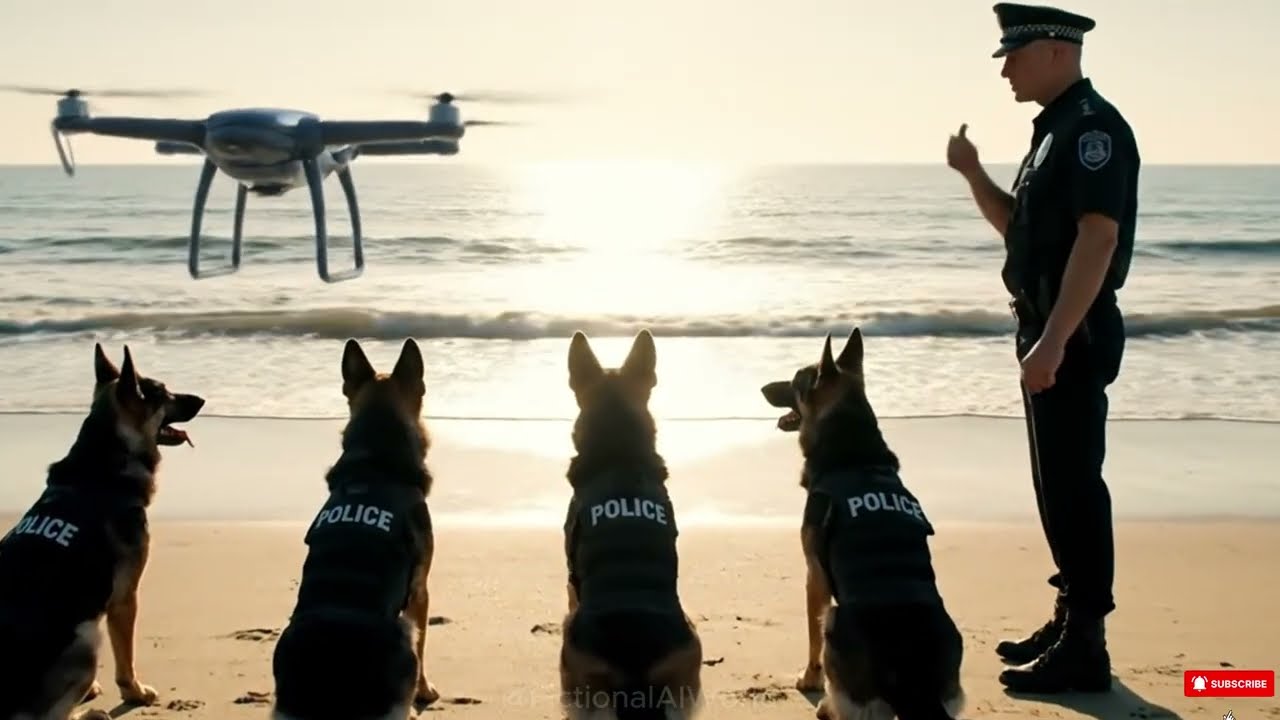 As the team disembarks, the dogs immediately fall into a tactical formation, moving in sync with their two-legged partners. Commands echo in the wind: “squad forward hill good dogs formation turn steady.” The search and pursuit mission continues with the commands “heat heat” and “heat heat,” reminding them to focus on the scent.