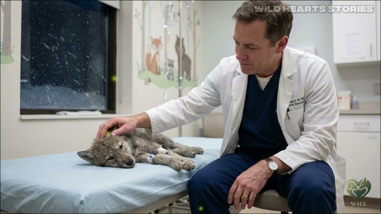 But this time, it was not a howl of desperation. It was something else entirely. It sounded [music] almost like hope. The storm broke on the third day. Michael had not left the hospital since the night the wolf arrived. [music] He had slept in snatches on the couch in the breakroom, eaten whatever Elena brought him, and spent every other moment at the pup’s side.