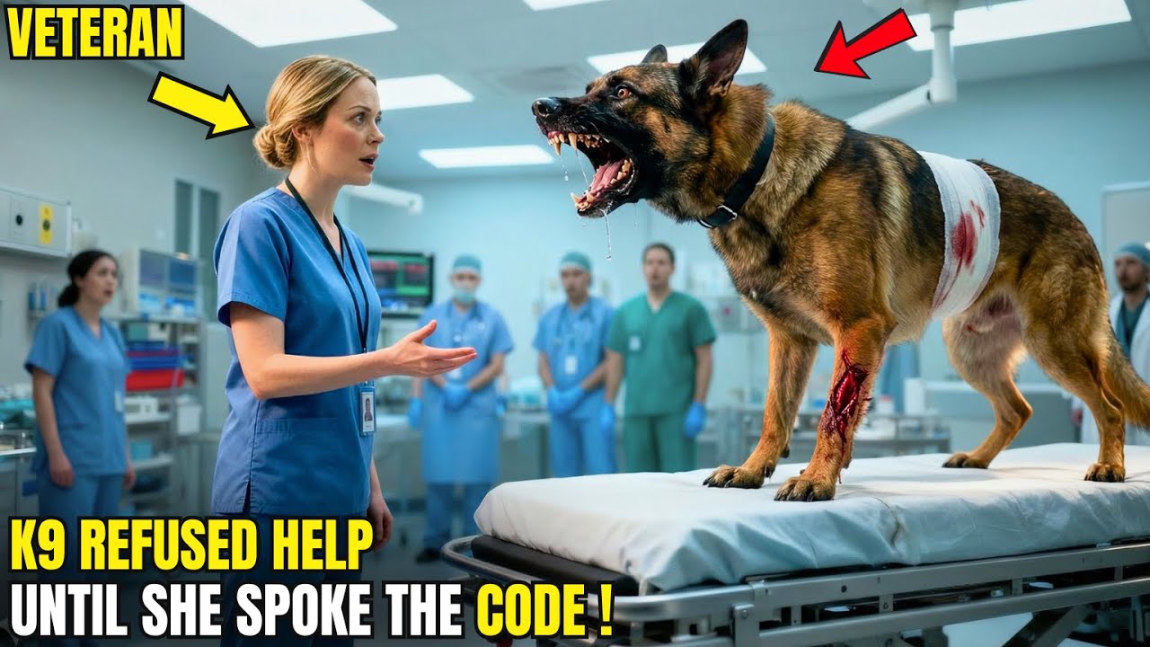 They had already decided he couldn’t be saved. The wounded K-9 lay on the ER gurnie, blood soaking through his fur, teeth bared at every hand that came near him. Medics tried. Doctors backed away. Security hovered by the door. They said he was unstable, too aggressive, too dangerous to treat.